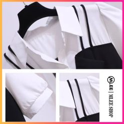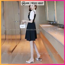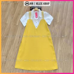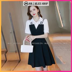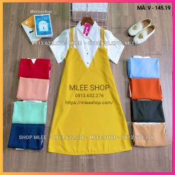 Đầm bầu yếm phối cổ sơ mi liền thân, MLEE SHOP