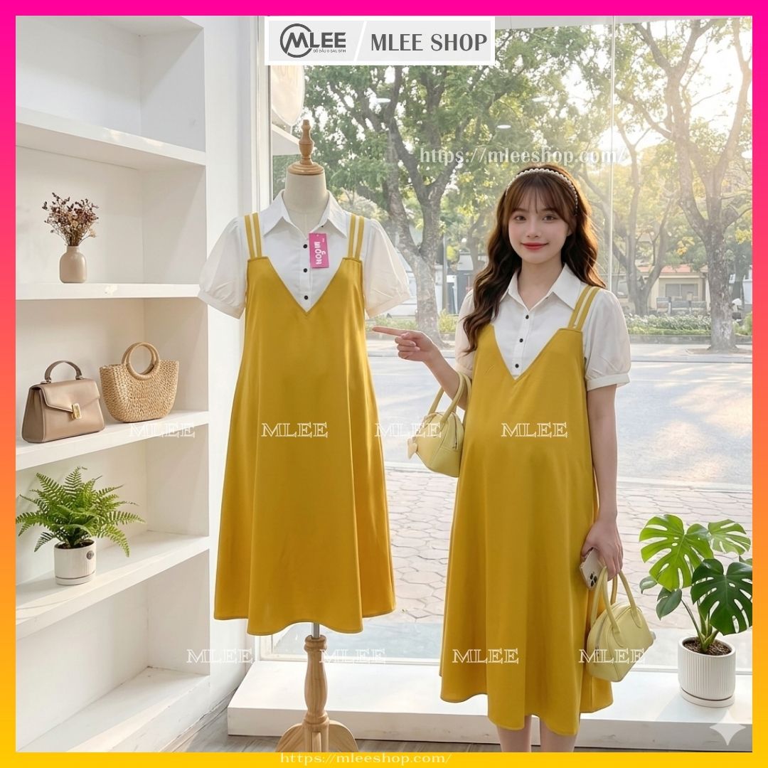 Đầm bầu công sở sơmi mùa hè, váy bầu công sở đẹp MLEE SHOP, Size 40-75kg
