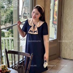 Mẫu đầm bầu thời trang vinh nghệ an với thiết kế cổ nơ phối màu nổi bật, mang đến vẻ ngoài dịu dàng, trẻ trung cho mẹ bầu. Form dáng suông rộng rãi giúp che bụng khéo léo, mặc thoải mái cả ngày mà vẫn giữ được nét gọn gàng.