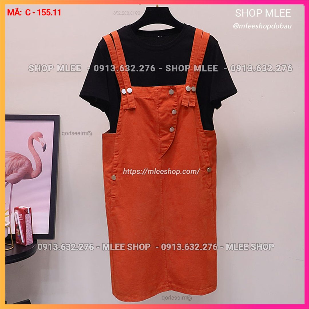 – Sét yếm bầu MÀU Cam = [ Áo thun Đen + yếm màu Cam ]