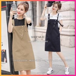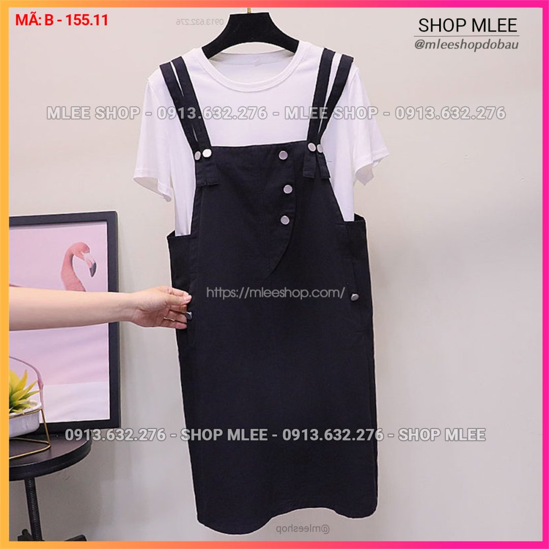 – Sét yếm bầu MÀU ĐEN = [ Áo thun trắng + yếm màu đen ]