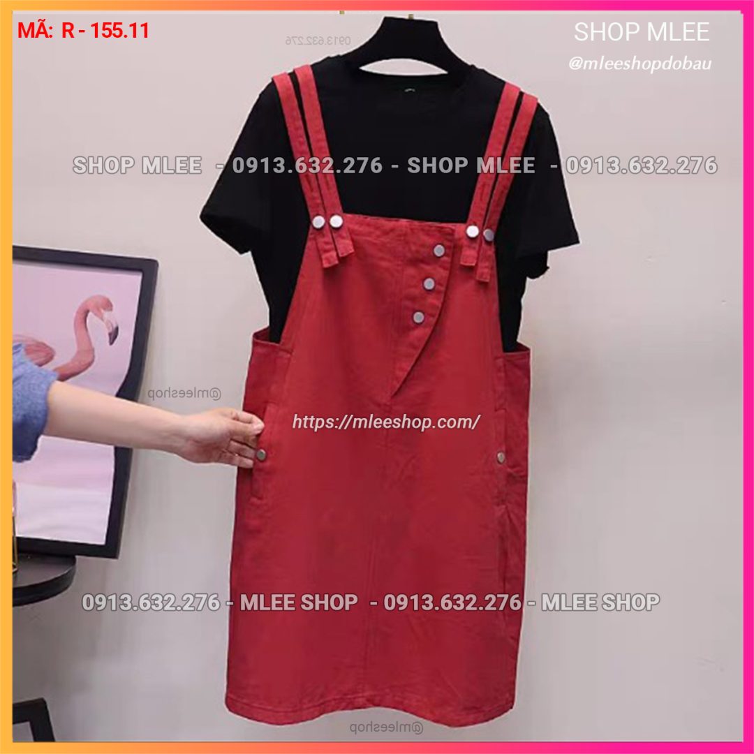 – Sét yếm bầu MÀU đỏ = [ Áo thun đen + yếm màu Đỏ ]