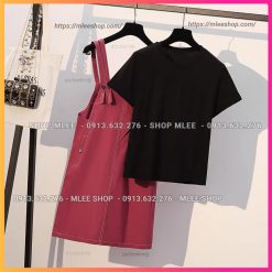 – Sét yếm bầu MÀU Tím = [ Áo thun đen + yếm màu Tím ]