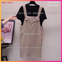 – Sét yếm bầu MÀU Da = [ Áo thun Đen + yếm màu da ]