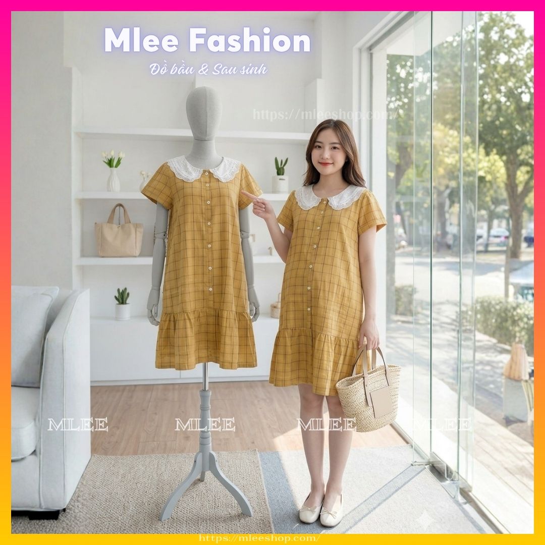 Váy bầu caro mùa hè, Đầm bầu công sở đẹp MLEE SHOP, Size 40-75kg