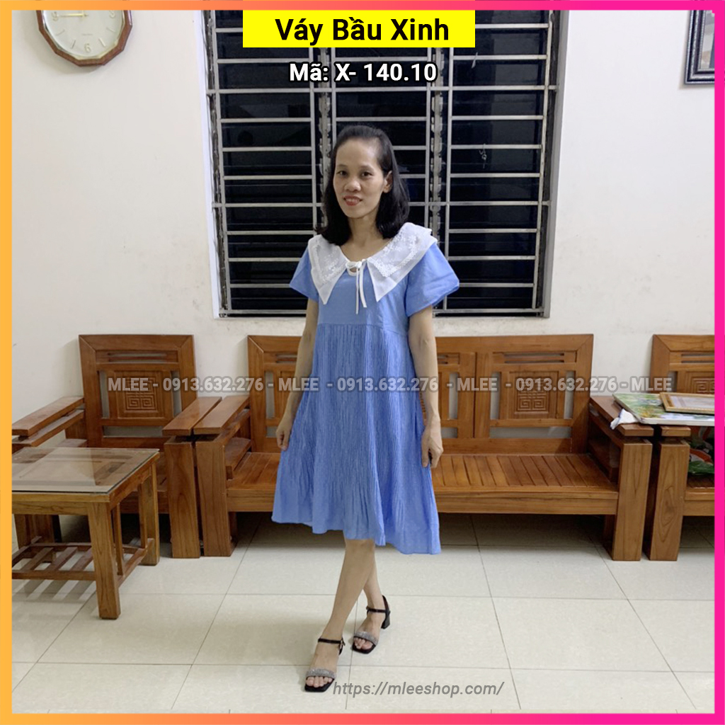 Váy bầu xinh phối ren cổ, đầm bầu công sở đẹp, size 40-75kg, MLEE SHOP
