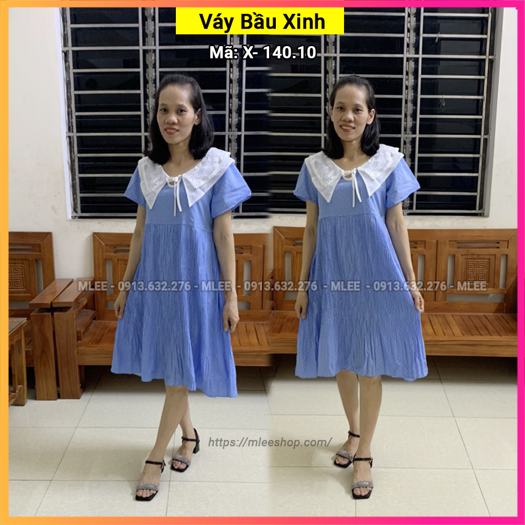 Váy bầu xinh phối ren cổ, đầm bầu công sở đẹp, size 40-75kg, MLEE SHOP